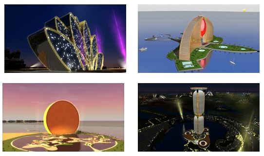 ALZAMAN Project – 100 km² new resort area comprising: Water world, Small Morocco, One Thousand and One Nights, Future City, Leisure Park. The Centre is represented by the historic part – shaped like the globe. Along the beautiful beach – expressing totally new forms of luxury